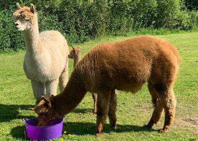 Our petting field - 2 friendly alpacas, 2 valais black nose sheep from Switzerland, 2 Netherland dwarf rabbits, 4 chickens.
