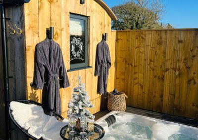 Upgrade to one of our Premier Shepherds Huts. Complete with King-size Bed, two single beds, 32″ Smart TV and microwave.